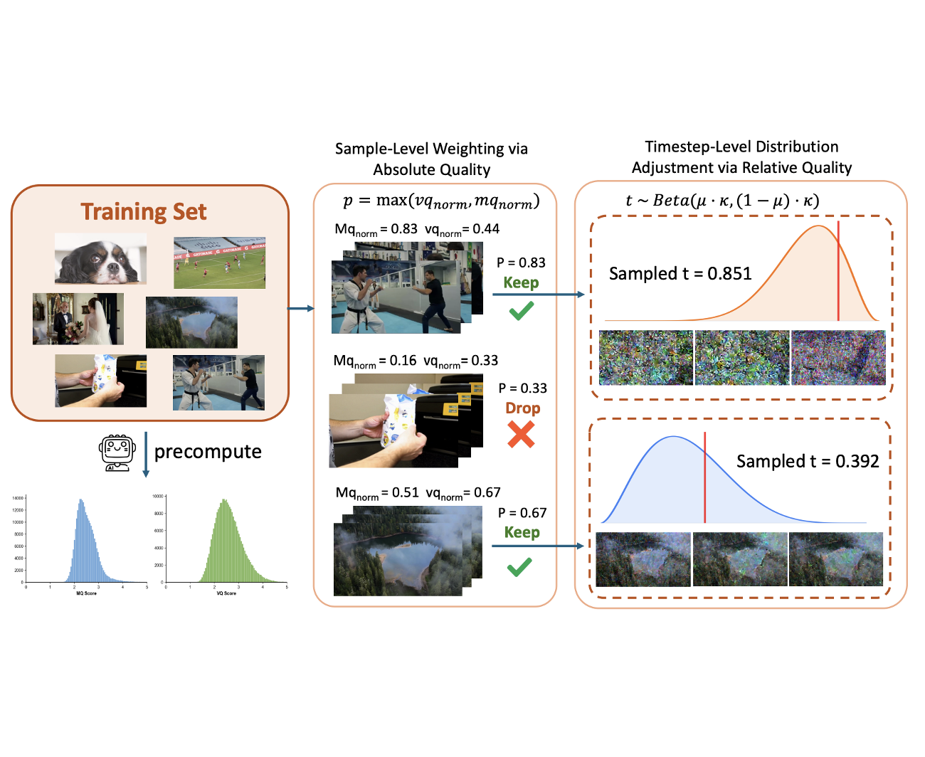 We identify a negative correlation between visual and motion quality in video data and propose Timestep-aware Quality Decoupling (TQD), which leverages timestep-specific sampling to decouple imbalanced data and achieve performance surpassing conventional training with even better data.